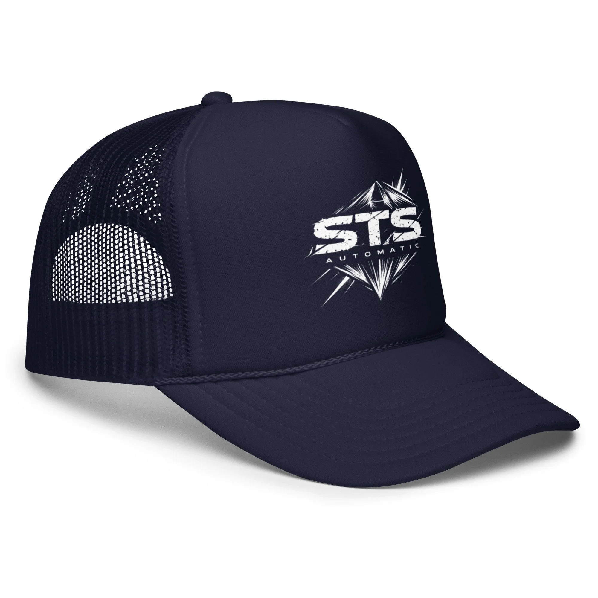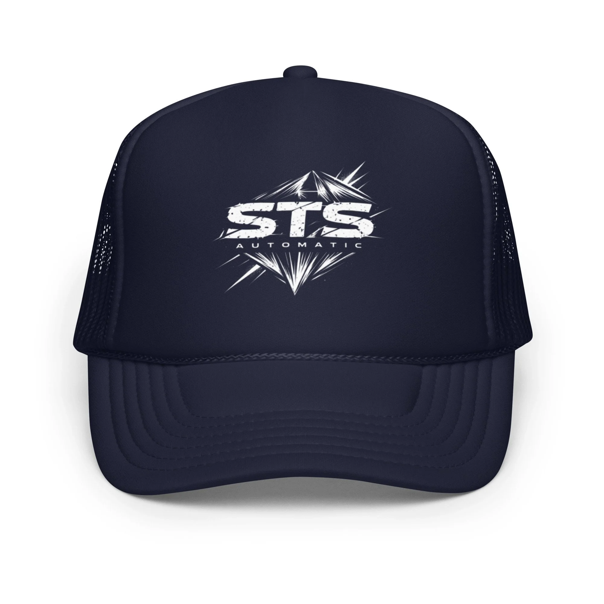 This trucker hat carries that STS Automatic cosmic energy—clean, raw, and built for long summer days that turn into late nights. The front features the bold STS logo in a heavy ink print, giving it that worn-in, street-ready feel like it’s already been through a few good seasons with you.