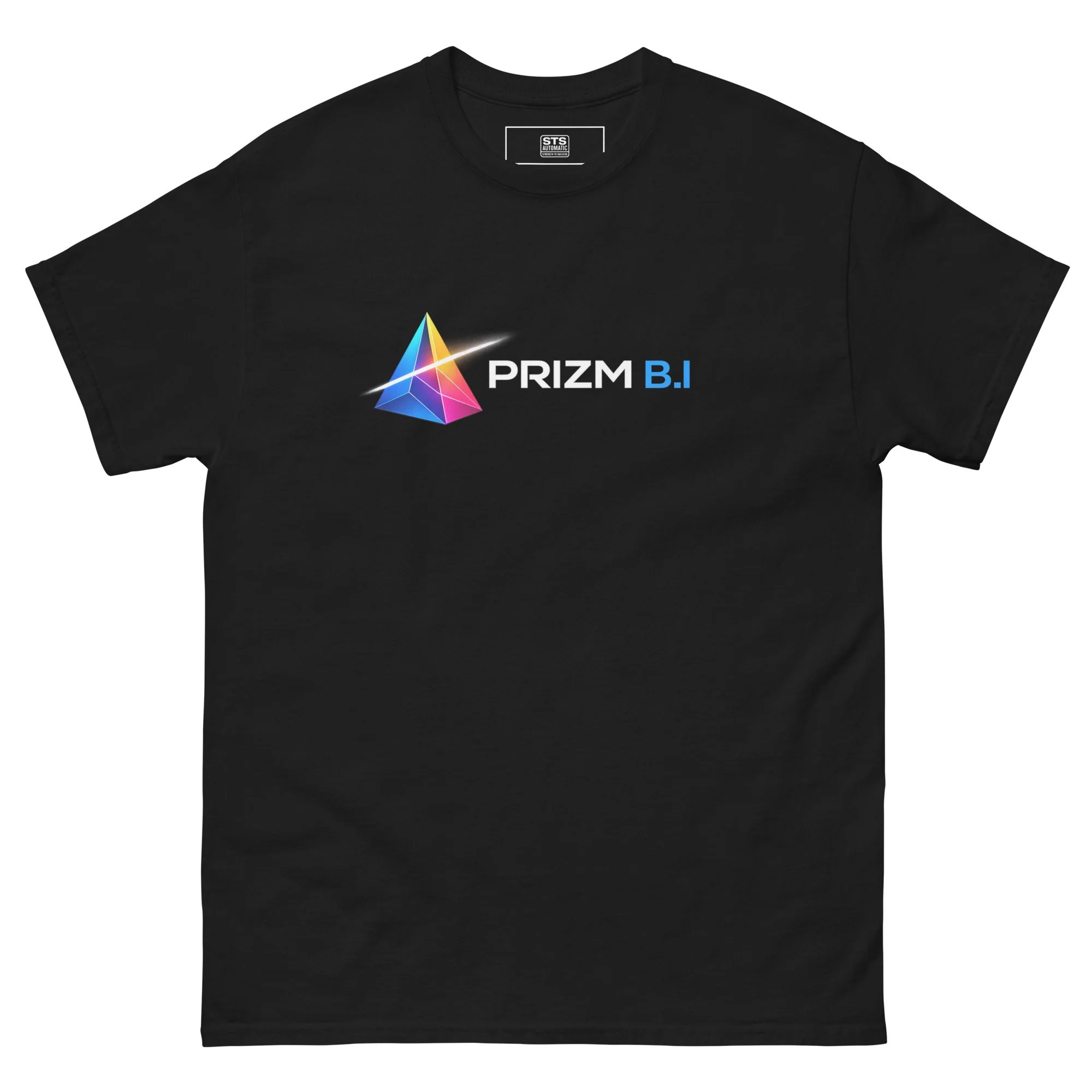 The PRIZM B.I tee features a bold prism graphic that represents transformation—raw data refracted into powerful insight.